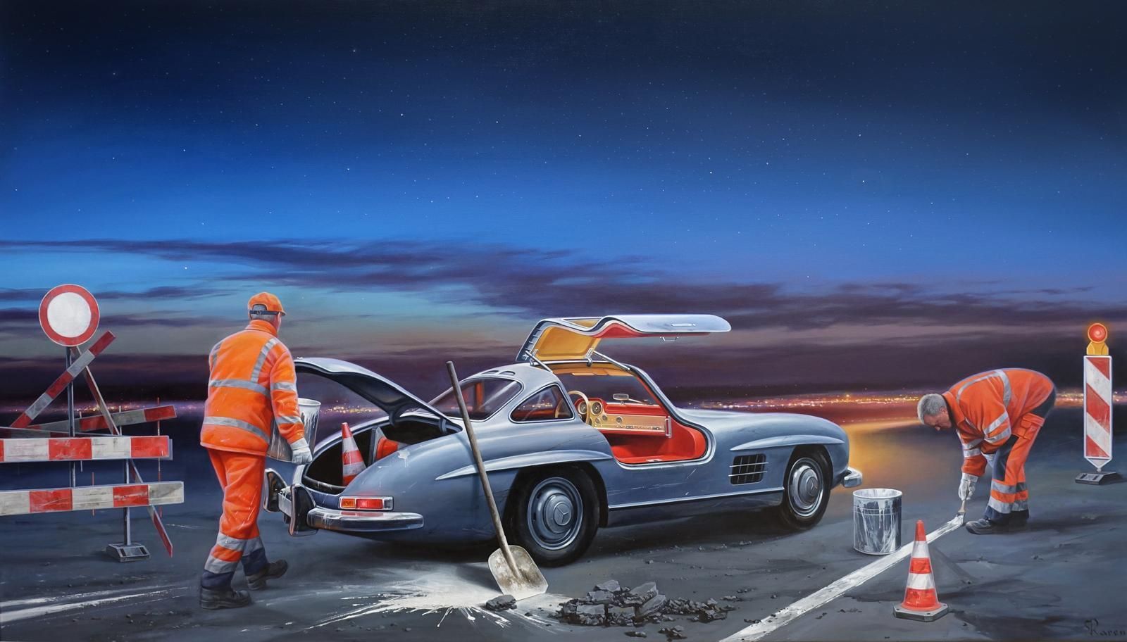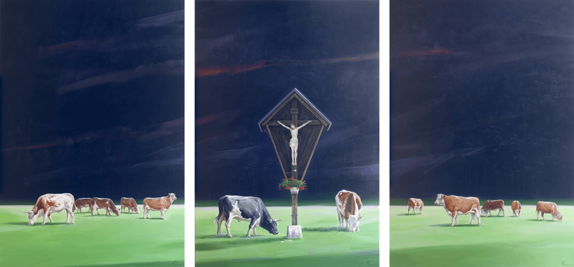 His works are always accompanied by abstract thinking that determines the themes and forges the bond that holds the results together - sometimes as an obvious series of images, sometimes more subliminally. As a medium, the artist almost always works with oil and/or acrylic on canvas, which he primes several times beforehand.